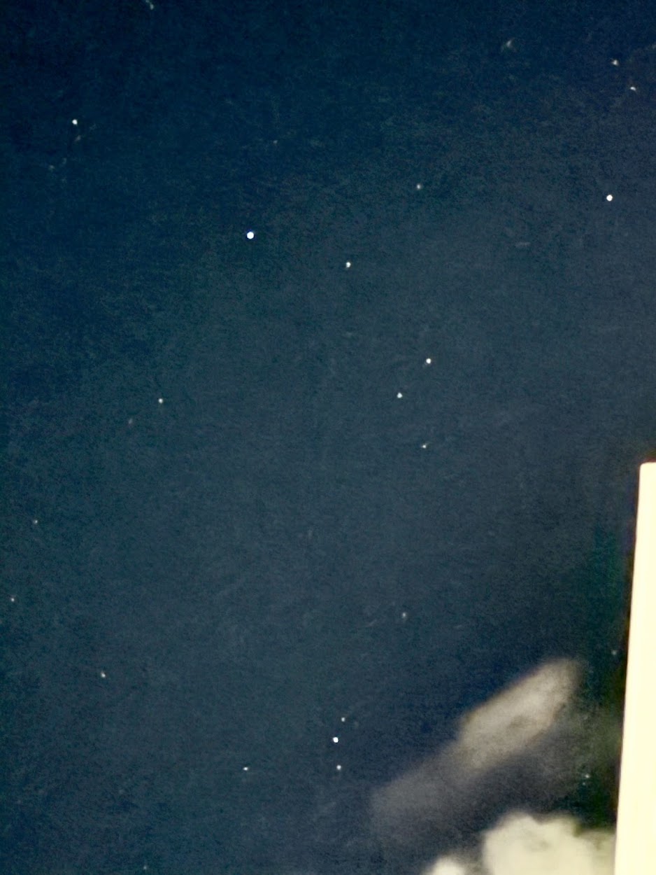 Nossa avaliação da visão astronômica do céu, considerando o Seeing Index 5 – cobertura de nuvens, e Seeing Index 1 – todas estrelas visíveis, variou de Index 3 para 4. Em outra escala numérica, a Escala de Bortle, variando de Classe 1- Excelente céu escuro, para Classe 9 – céu brilhantemente iluminado, variou de Classe 6 para 9.