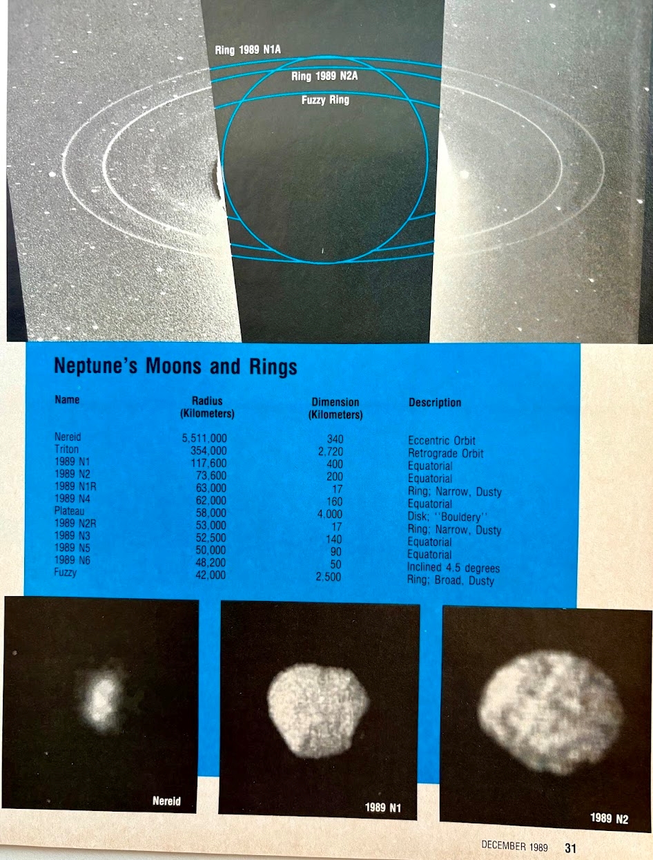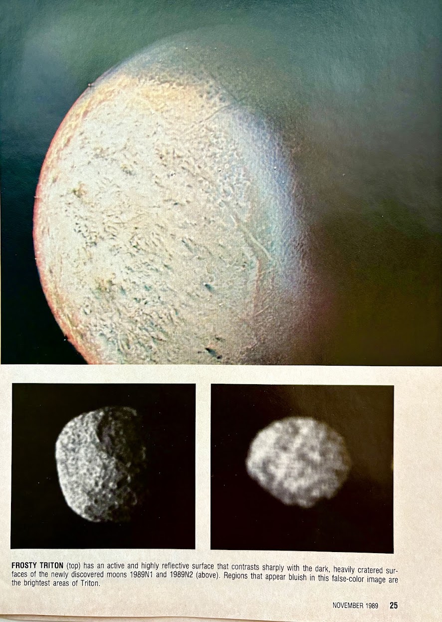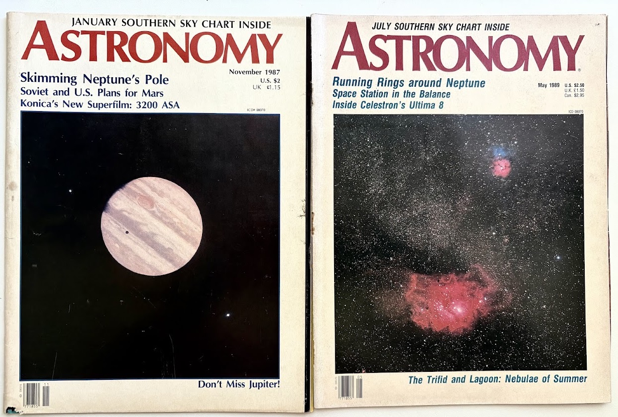 É necessário lembrar que estávamos no ano de 1989. A internet chegaria na década seguinte, o Windows em 1995. Então, sem e-mails, aplicativos e sites, nos restavam as publicações internacionais que felizmente, mesmo ao peso de dólares, chegavam com certa brevidade. Neste terreno, a maravilhosa Astronomy Magazine era o bálsamo cósmico que mitigava nossa busca por todas as atualizações da astronomia que evoluía dia a dia. Vejamos a sequência das publicações que adicionavam mais e mais curiosidade e emoções sobre Netuno: