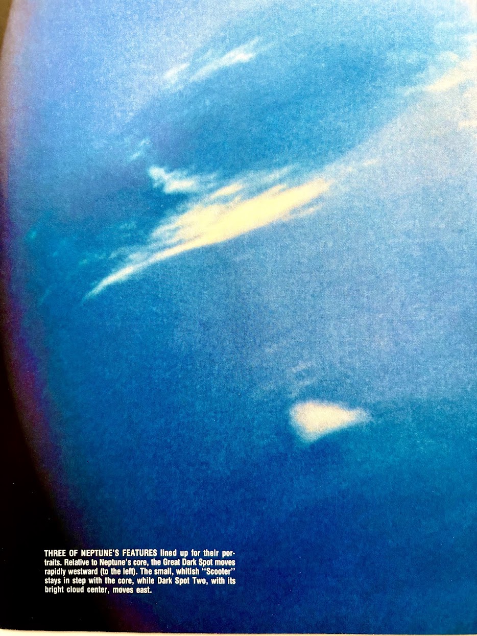 Finalizando: Nunca mais pensaremos em Netuno como um fraco mundo azul-esverdeado na margem externa do sistema solar. O registro pictórico vívido de um belo e dinâmico Netuno com nuvens, tempestades e grandes sistemas de vento, circulado por oito satélites, quatro anéis e uma folha de poeira, admite Netuno na lista dos fascinantes mundos conhecidos. E agora Tritão, há apenas algumas semanas um satélite fraco de um mundo distante, também é classificado como um dos objetos mais emocionantes do sistema solar. Godspeed Voyager 2.